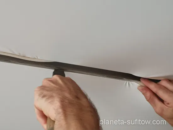 - profil bezuszczelkowy do sufitu napinanego jest owinięty wokół obwodu pomieszczenia